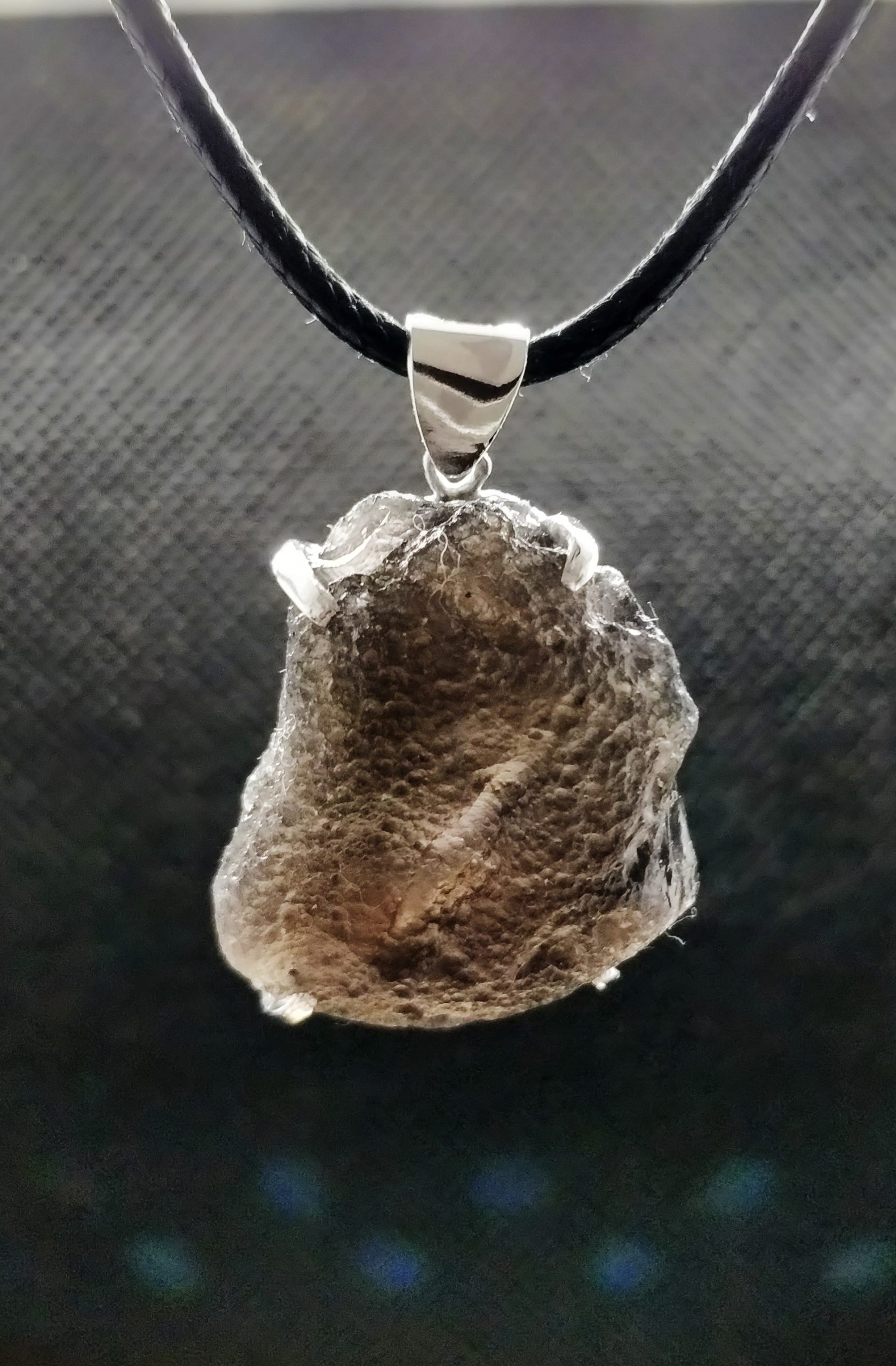 Raw, natural Agni Manitite-Pearl of Divine Fire- from Java, Indonesia. Set in handcrafted sterling silver mounting.