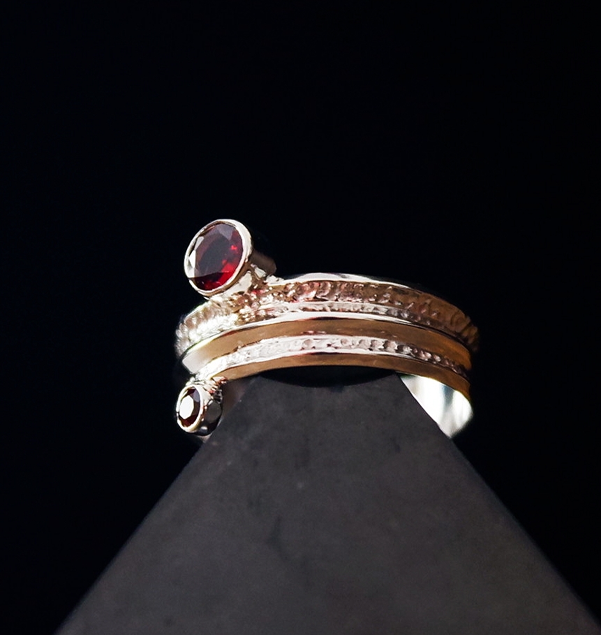 Sterling silver with HQ, natural almandine garnets (5.0 and 3.0 mm)