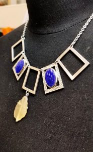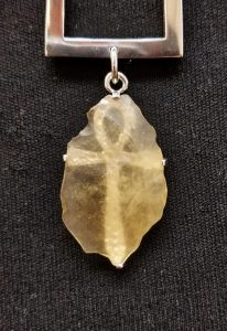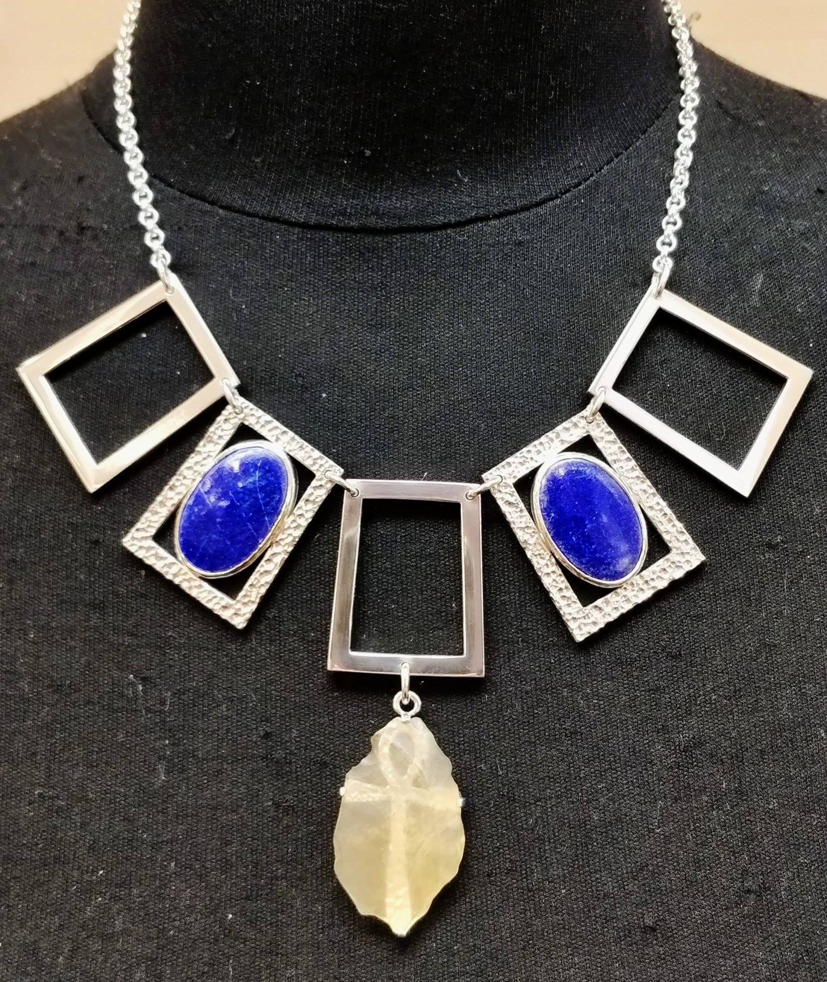 Handmade sterling silver necklace. A raw, natural A-grade Libyan Gold Tektite with a sterling silver Ankh symbol underneath it and HQ lapis lazuli cabochons.