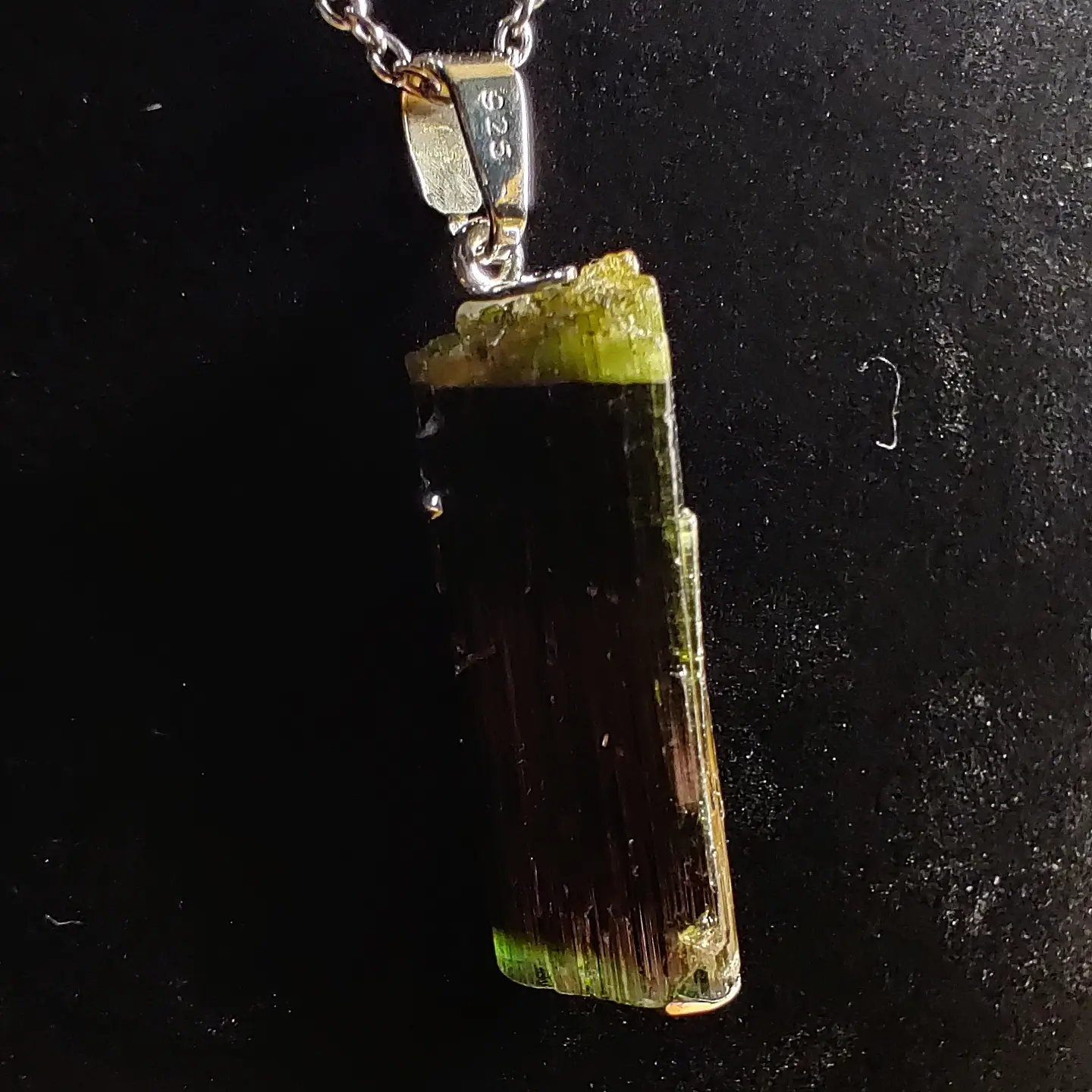 Rare, raw, natural black/ green tourmaline from the Himalayan, set in sterling silver mounting.